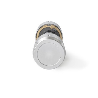 Der Innenknauf lässt sich immer bedienen. Der Leseknauf mit der Elektronik auf der Außenseite des elektonischen Schließzylinders wird vom Transponder, Karte oder per App freigeschaltet und gewährt damit den Zugang.